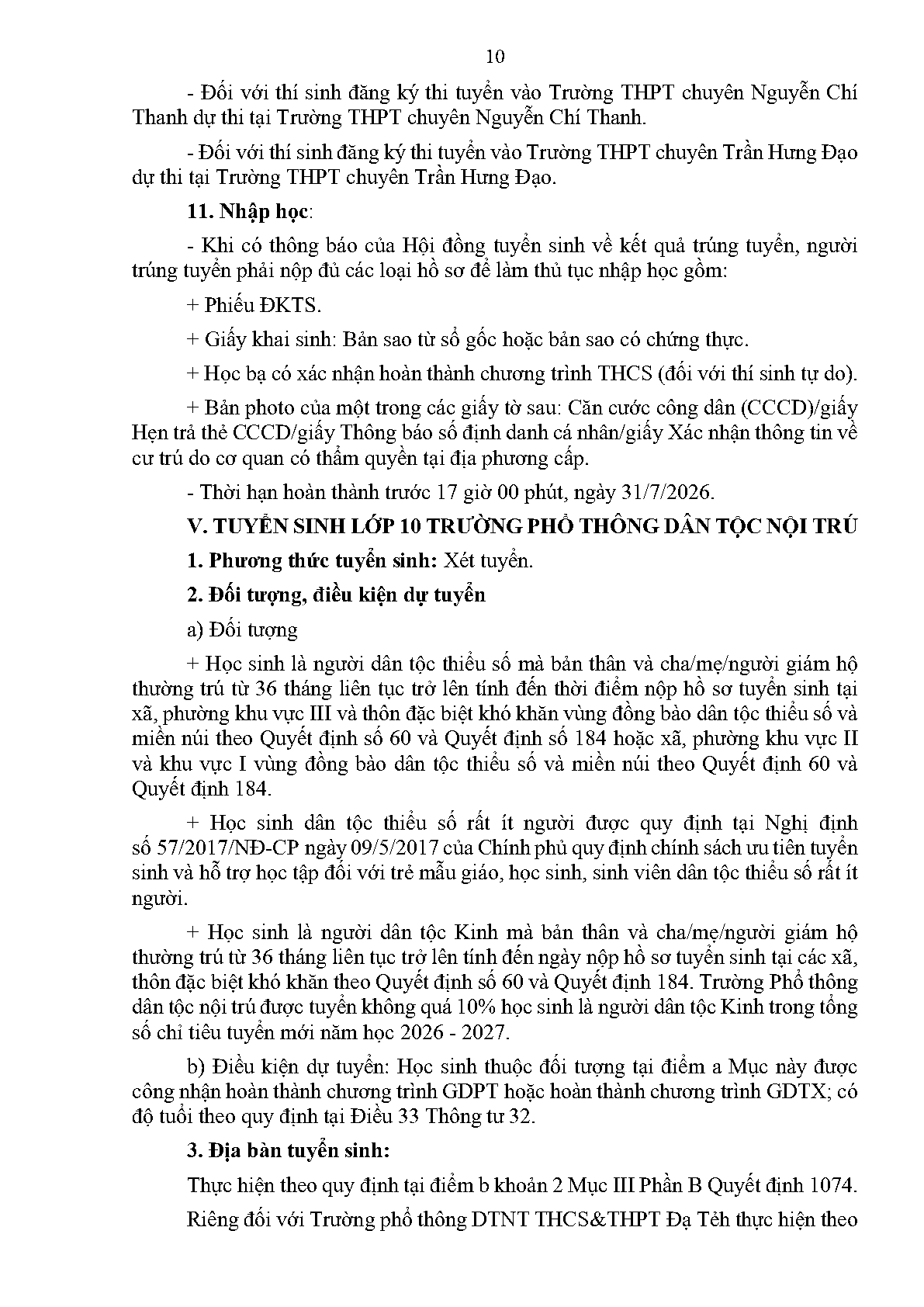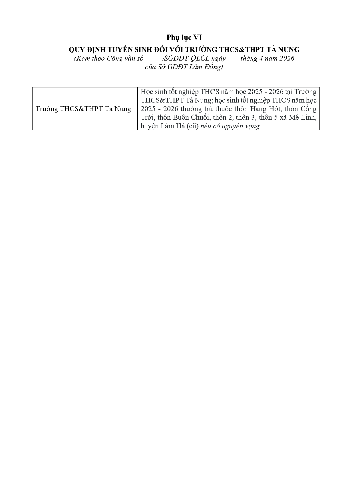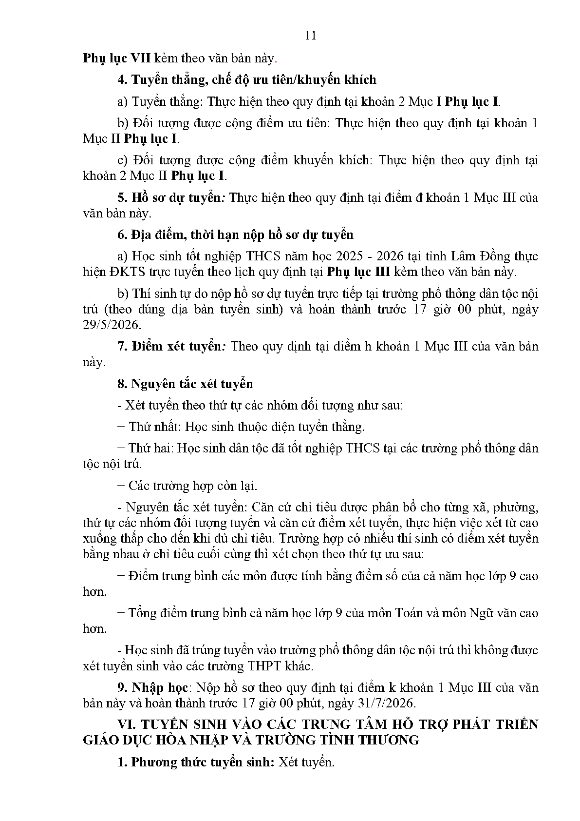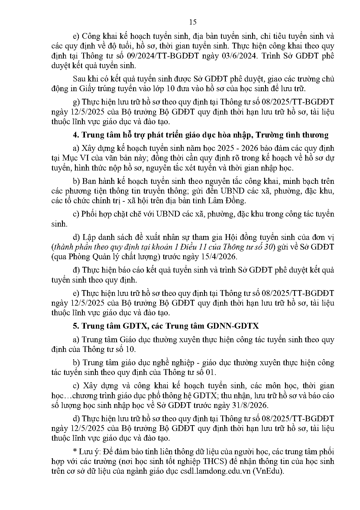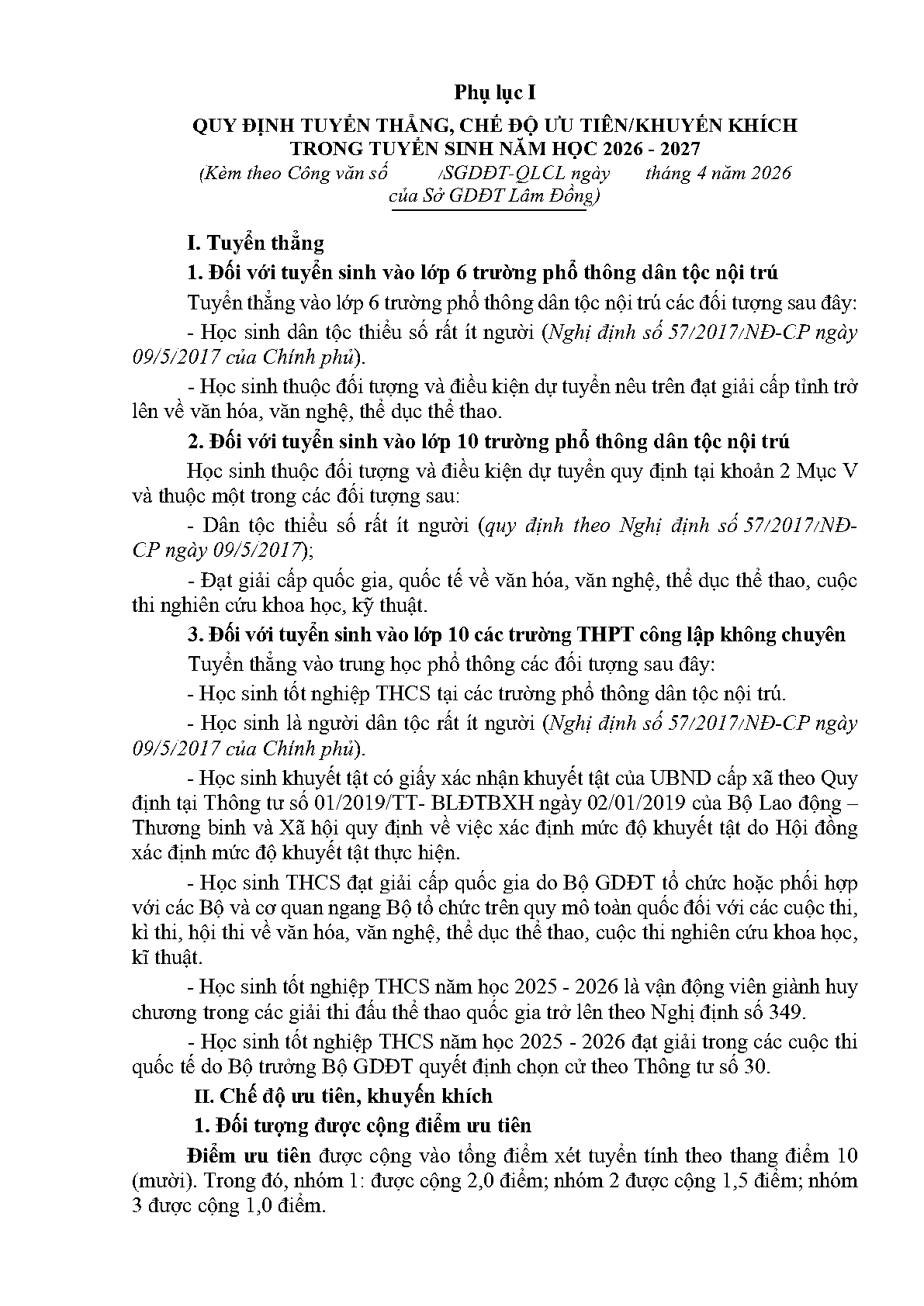 • Quyết định Phê duyệt Kế hoạch tuyển sinh vào trường phổ thông dân tộc nội trú, tuyển sinh vào lớp 10 các trường trung học phổ thông năm học 2026 – 2027 trên địa bàn tỉnh Lâm Đồng