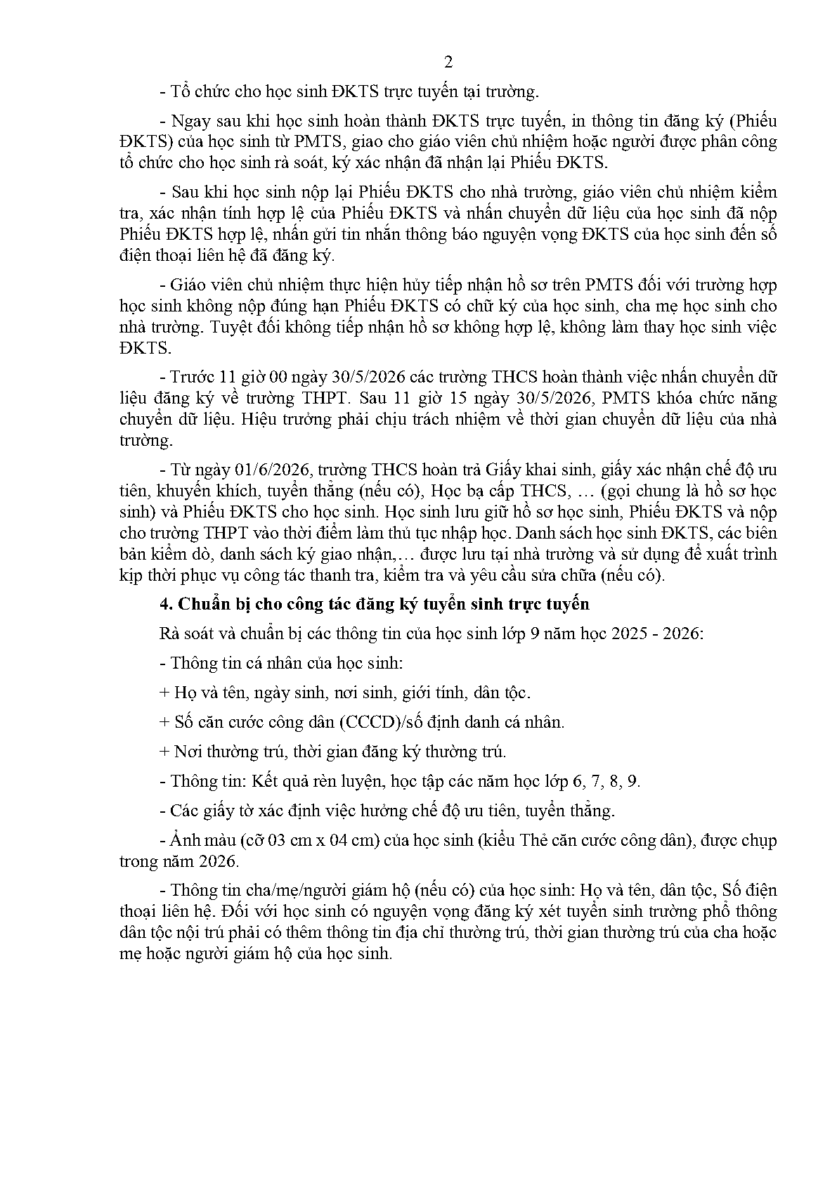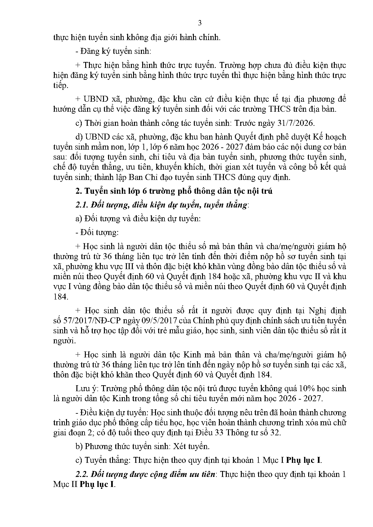 3. Hướng dẫn tuyển sinh mầm non, phổ thông năm học 2026-2027 của Sở GD&ĐT