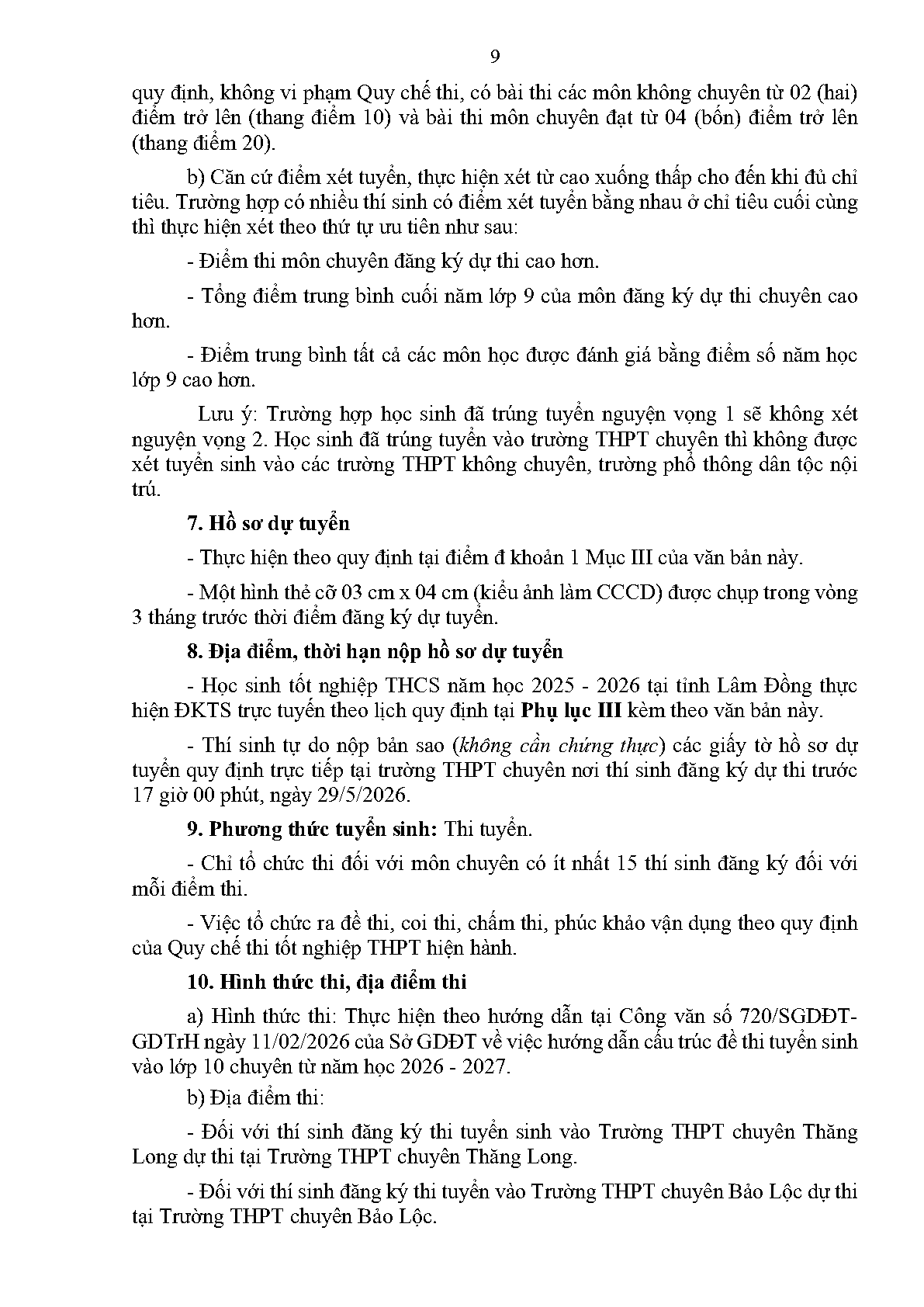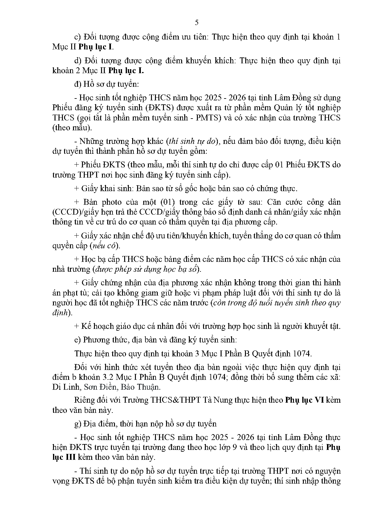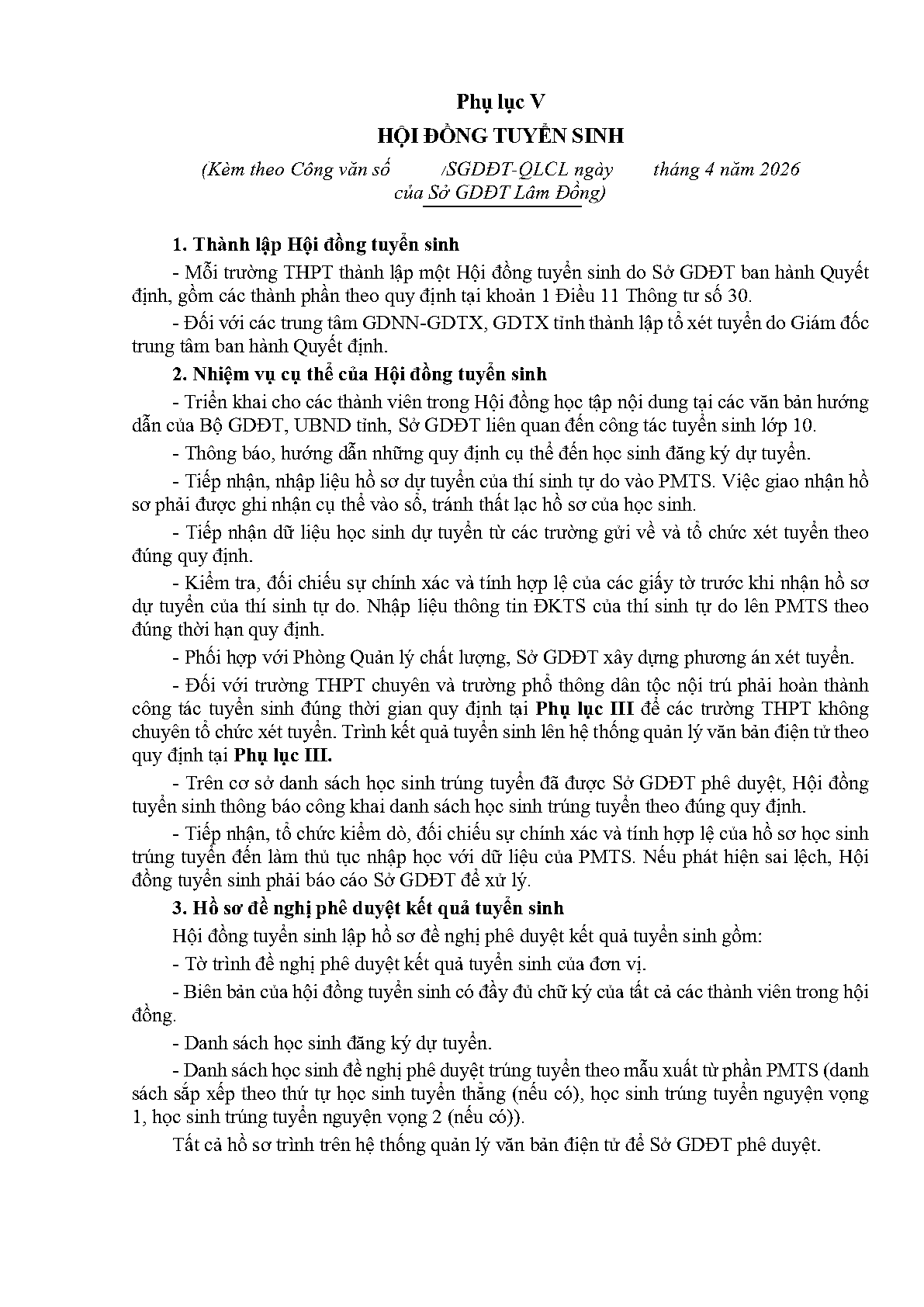 Quyết định Phê duyệt Kế hoạch tuyển sinh vào trường phổ thông dân tộc nội trú, tuyển sinh vào lớp 10 các trường trung học phổ thông năm học 2026 – 2027 trên địa bàn tỉnh Lâm Đồng