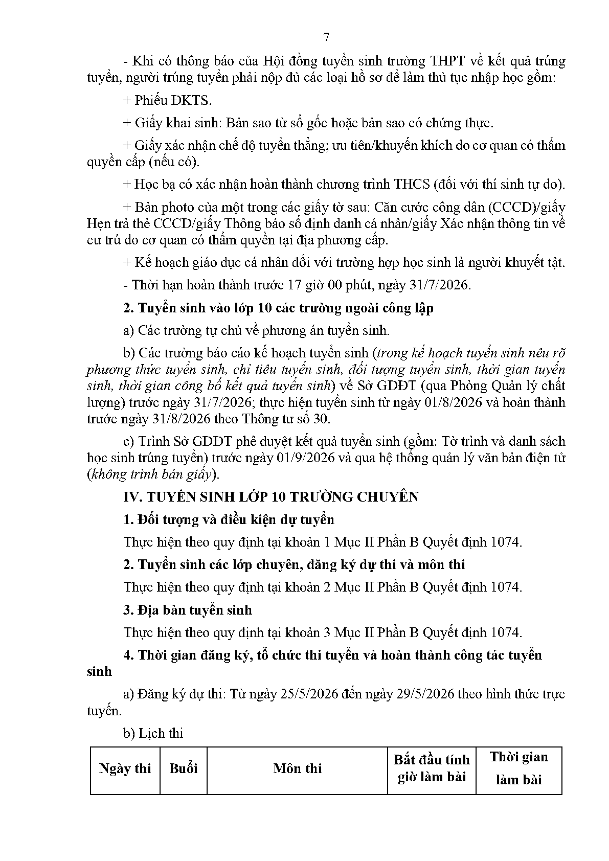• Lịch thi tuyển sinh vào lớp 10 năm học 2025-2026 (27/03/2025)