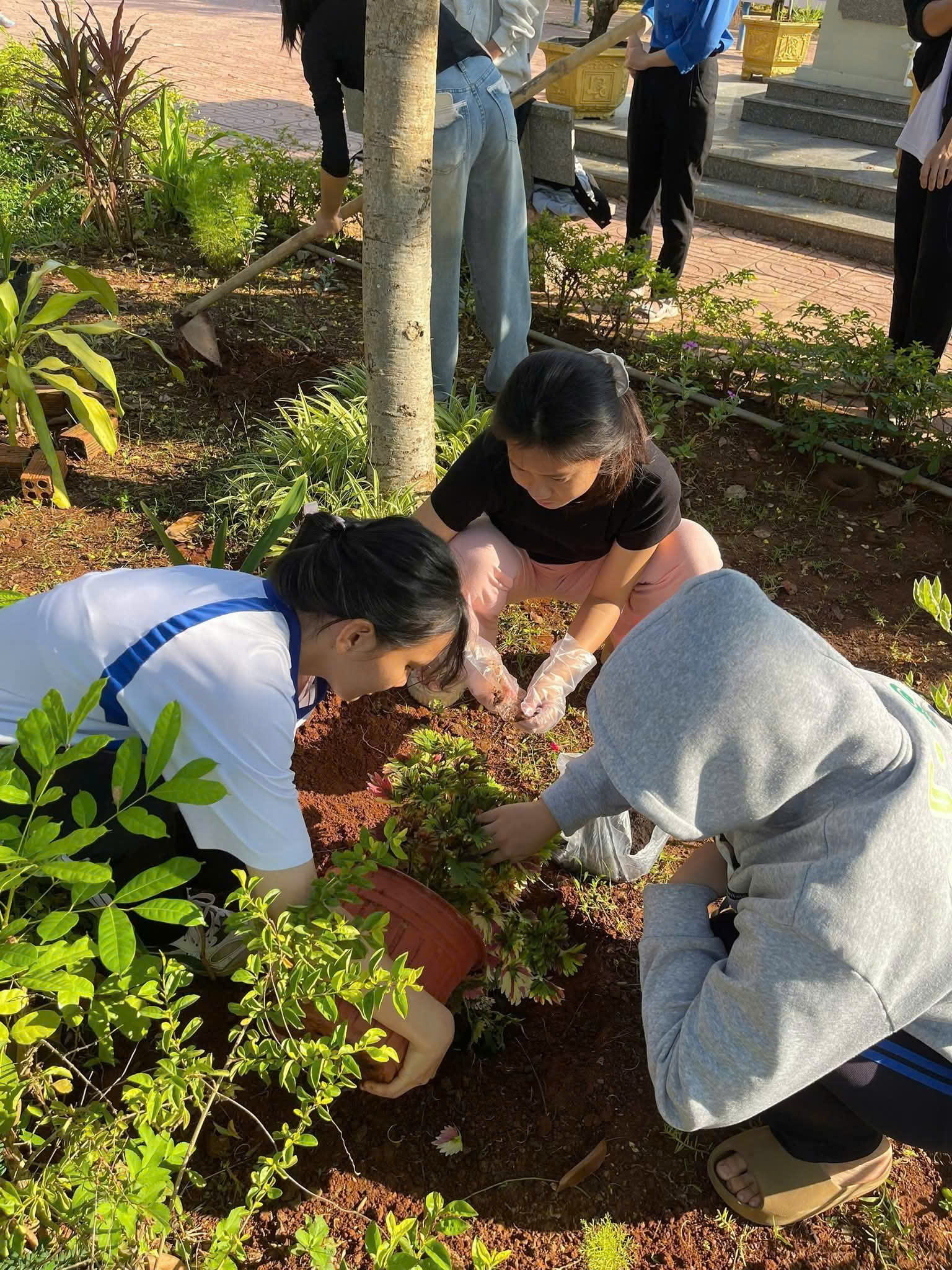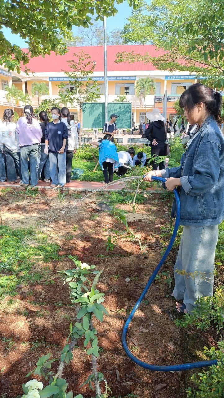 Hàng tuần, tập thể các lớp luôn phân công trồng và chăm sóc hoa khu vực đã phân công cho lớp trong cả năm học. Cuối tuần, BCH Đoàn luôn kiểm tra nhắc nhở và cộng điểm thi đua. Từ đầu tháng 9 đến nay, nhà trường đã trồng mới và chăm sóc hơn 50 chậu hoa, cây cảnh.