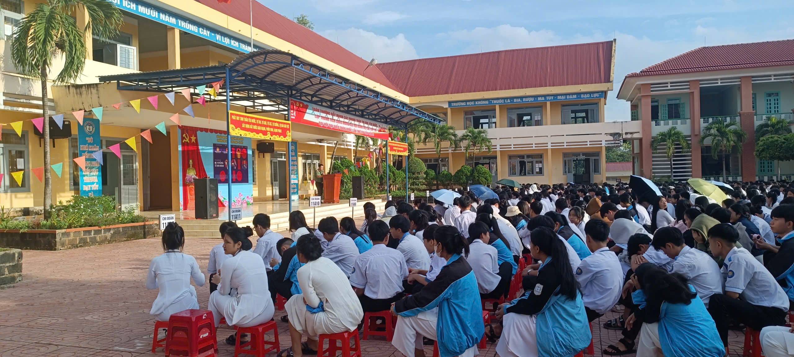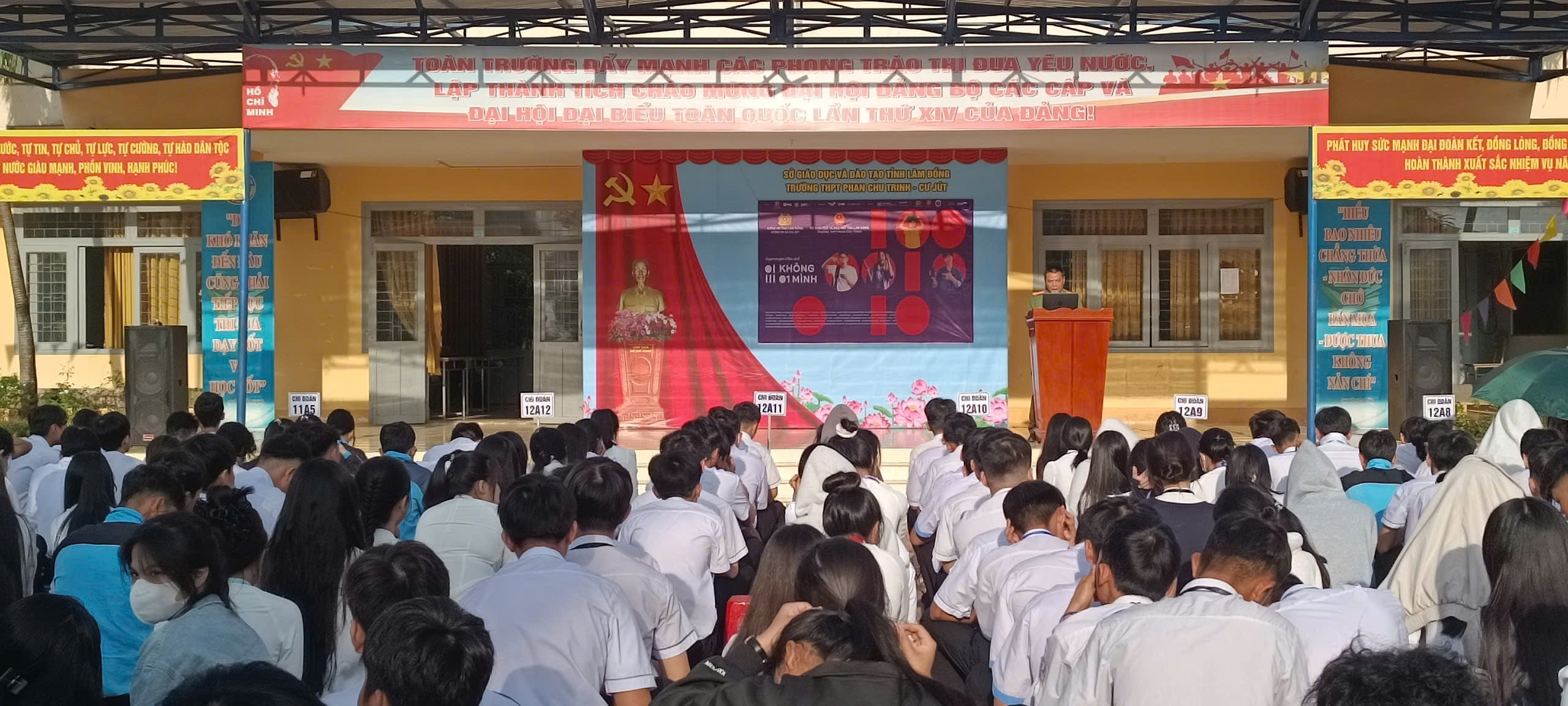 Sáng ngày 10/11/2025, trong tiết chào cờ đầu tuần, trường THPT Phan Chu Trinh – Cư Jút đã phối hợp cùng Công an xã Cư Jút tổ chức buổi tuyên truyền Chiến dịch “Không một mình”.